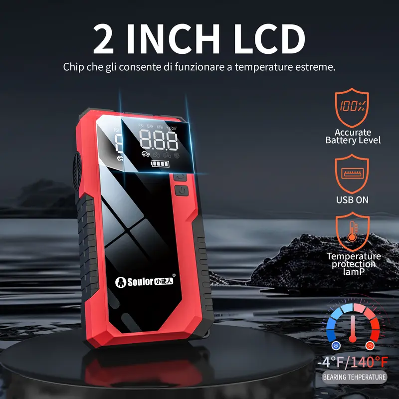 Producto fant¨¢stico. La pantalla digital es muy clara, el compresor se detiene autom¨¢ticamente cuando alcanza la presi¨®n deseada. El arrancador es potente y seguro.