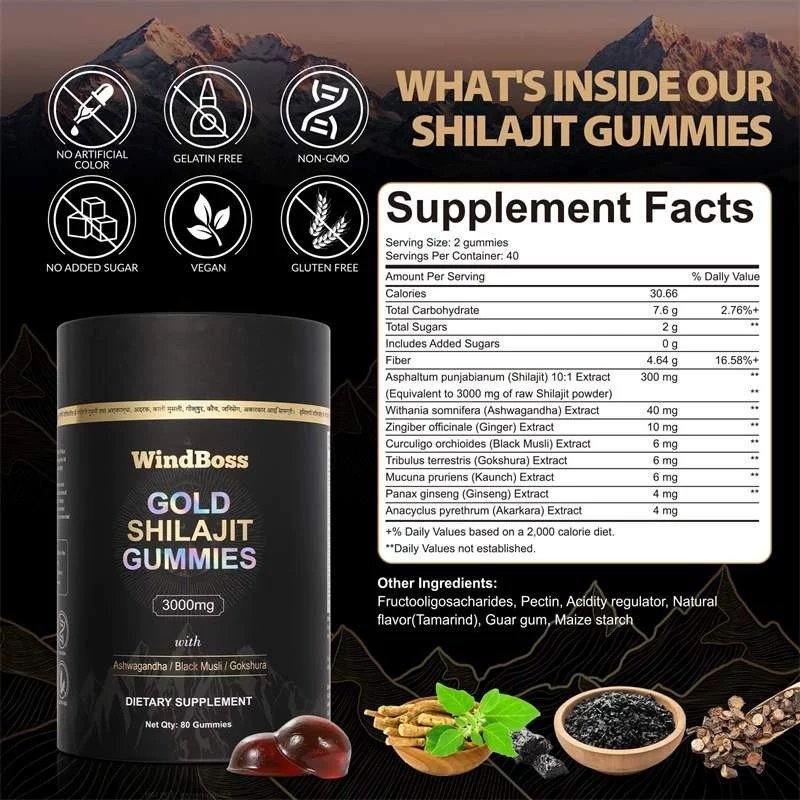 Las gominolas de Shilajit Himalayo WindBoss son incre¨ªbles, me siento con m¨¢s energ¨ªa desde que las uso.